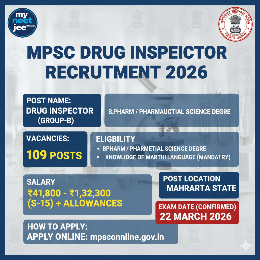 | [my neet jee media logo] | MPSC Drug Inspector 2026 |